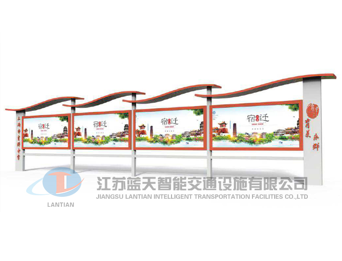 是一家生產(chǎn)宣傳欄,候車亭,公交站臺,閱報欄,指路牌,廣告垃圾箱,滾動換畫燈箱等系列產(chǎn)品廠家!產(chǎn)品多達(dá)上百種,亦可根據(jù)客戶的需求加工制作各種型號、規(guī)格的產(chǎn)品。目前已經(jīng)成功的向市場推出裝備有太陽能的各類產(chǎn)品,緊跟國家倡導(dǎo)“節(jié)能低碳”的環(huán)保政策。